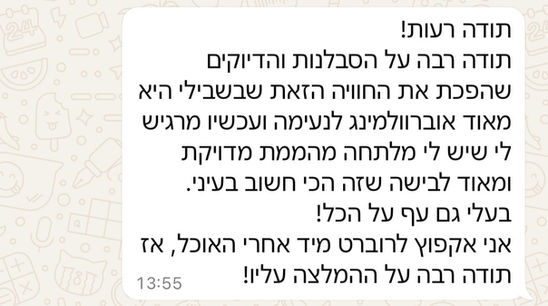 מוזמנת לקבוע איתי שיחה ללא עלות, שבה נוכל לשוחח ואשמח לענות על כל שאלה.